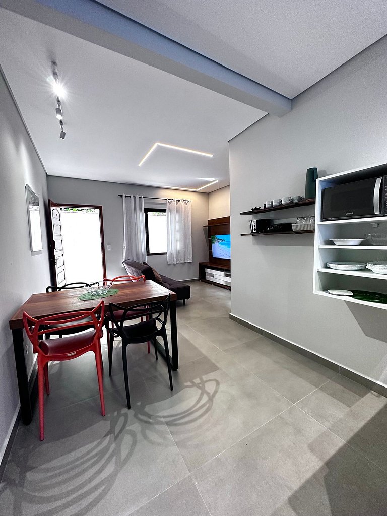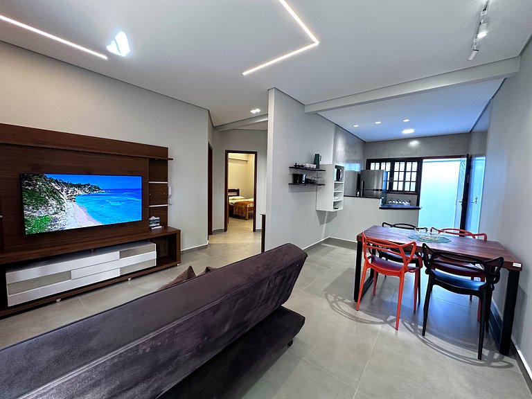 Excelente apartamento com ar condicionado nos dois quartos, smart TV 50 polegadas e WIFI. Construção nova, móveis todos novos, muito bem localizado, no centro da cidade, 400 metros da praia do centro e burguer king, próximo aos supermercados, padarias, bancos, lojas e etc. Acesso fácil as praias com três saídas, possibilitando desviar dos trânsito lento de alta temporada.