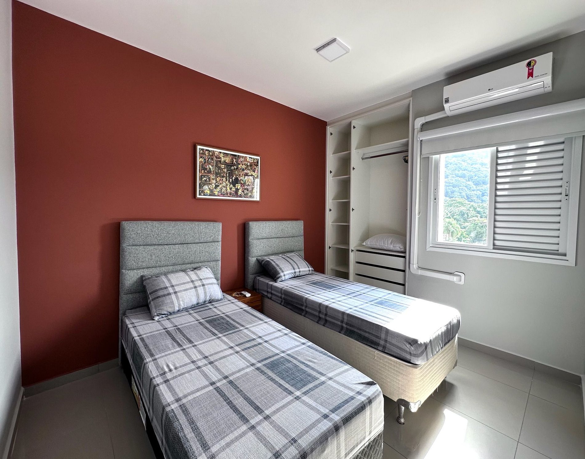 Os quartos possuem camas da melhor qualidade e armários planejados