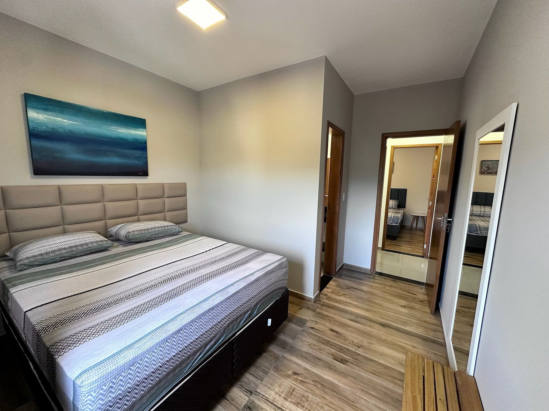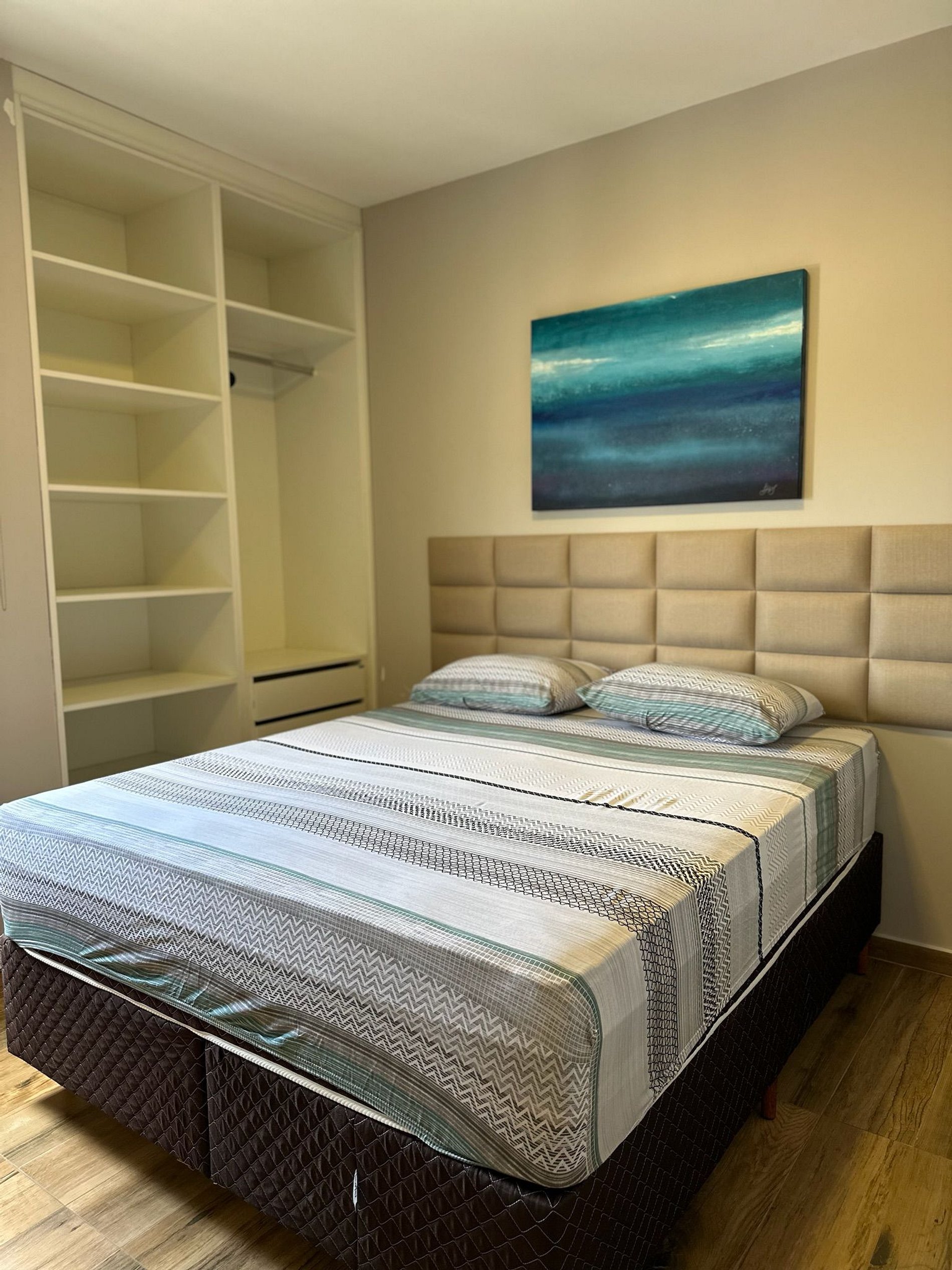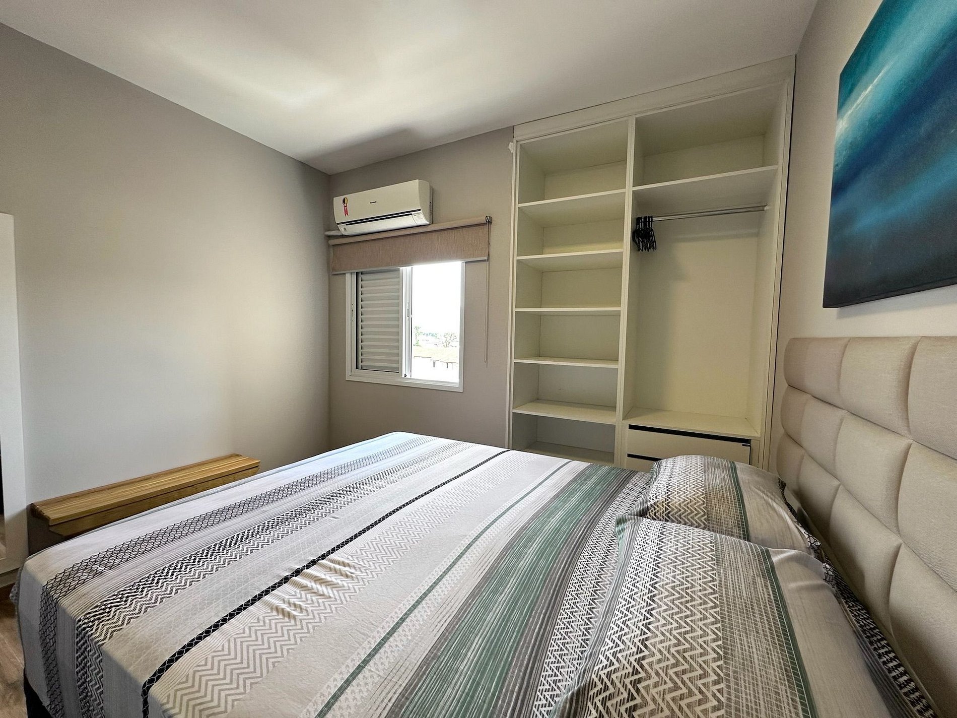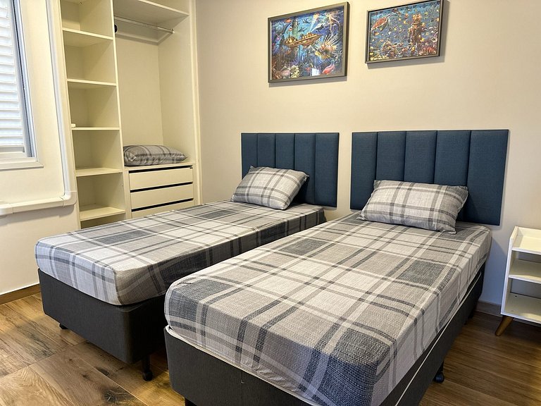 Os quartos possuem camas da melhor qualidade e armários planejados
