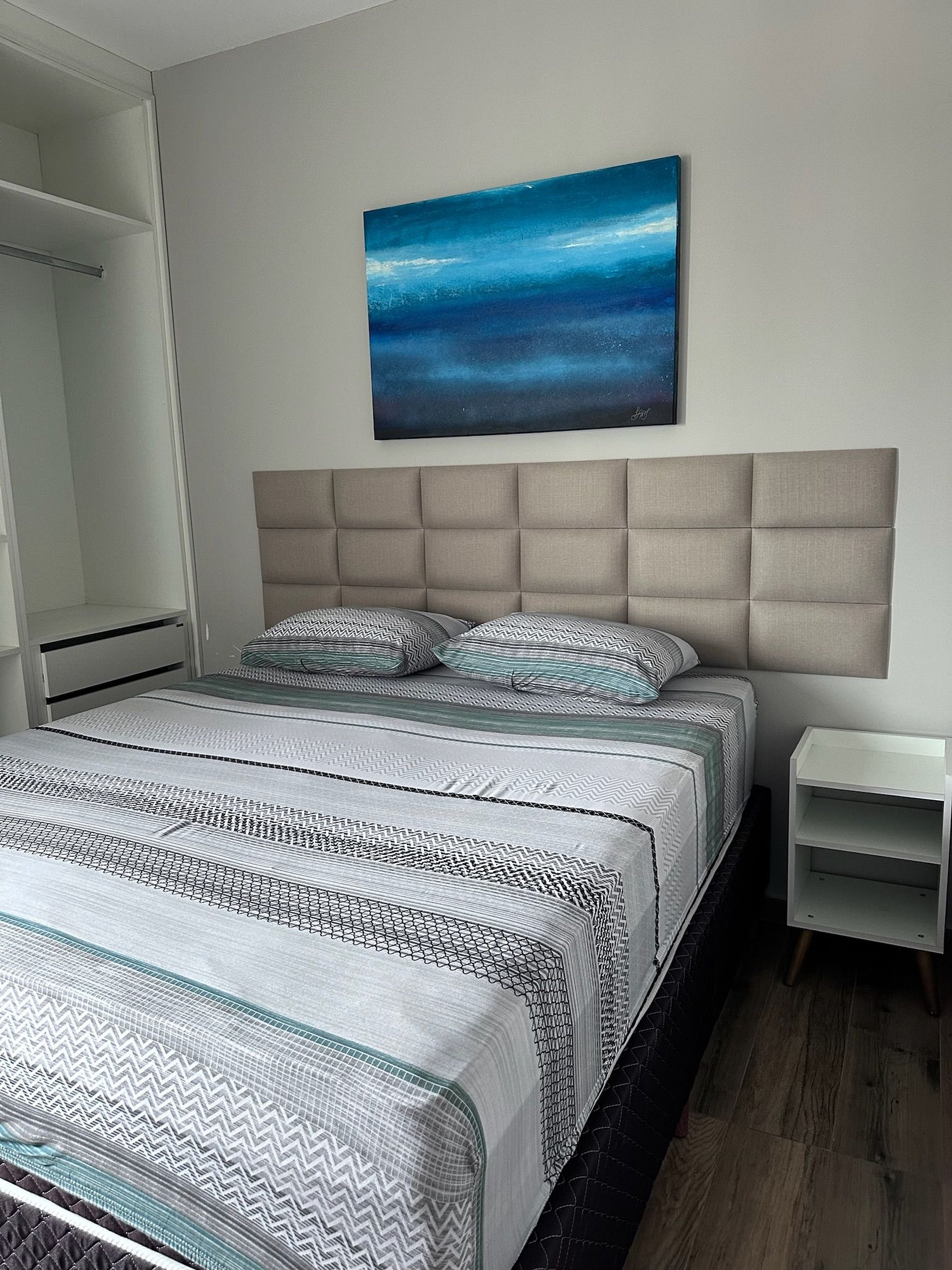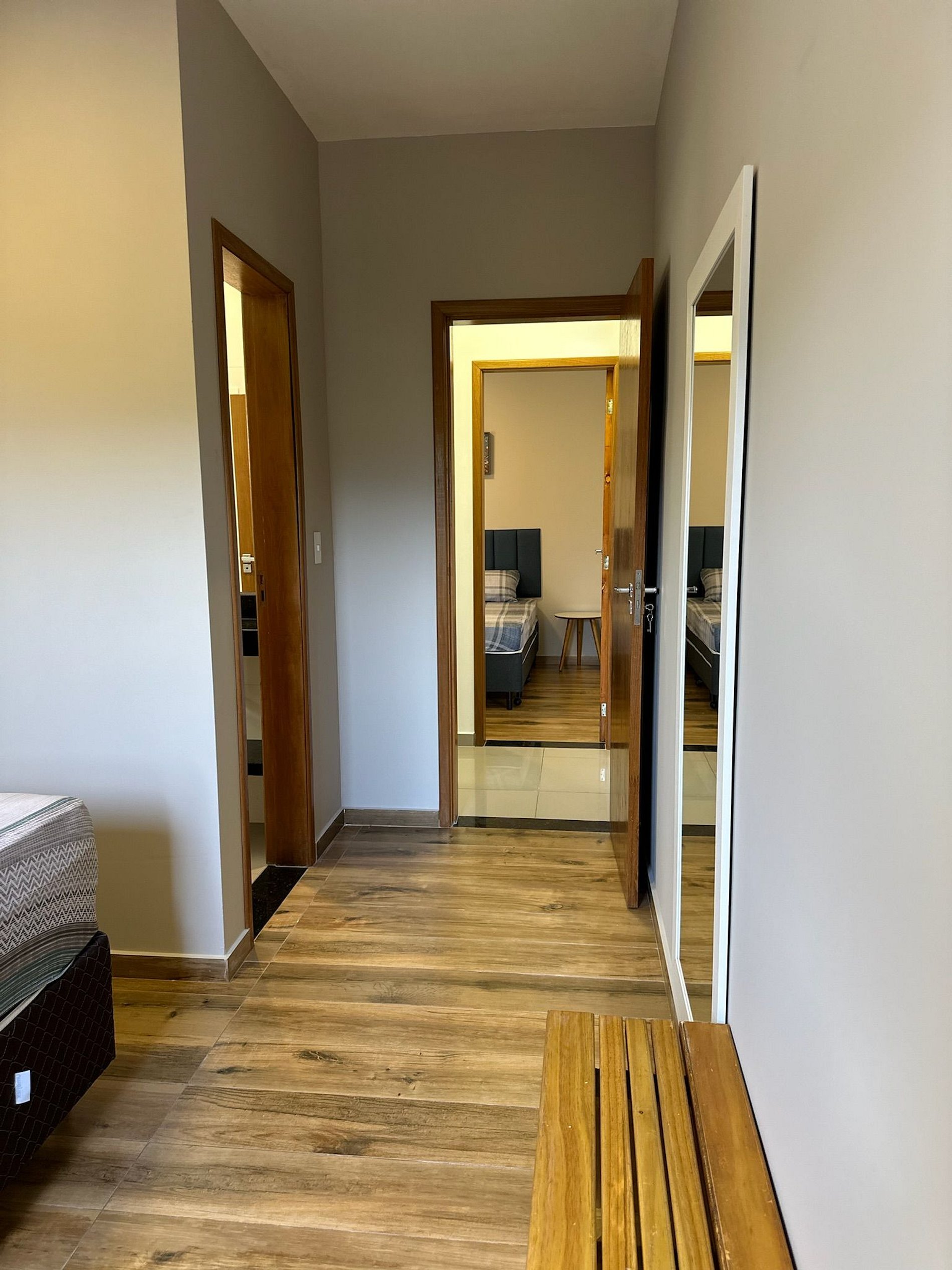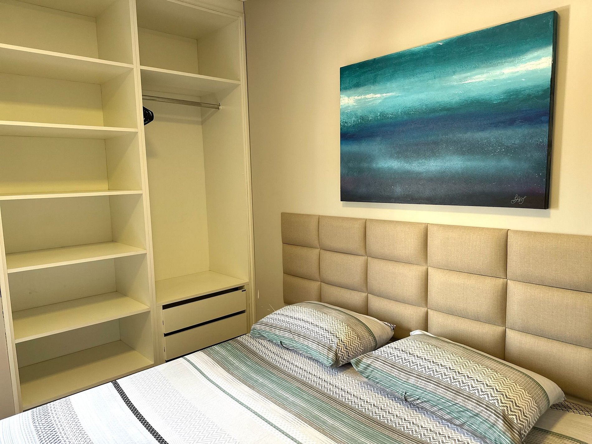 Os quartos possuem camas da melhor qualidade e armários planejados