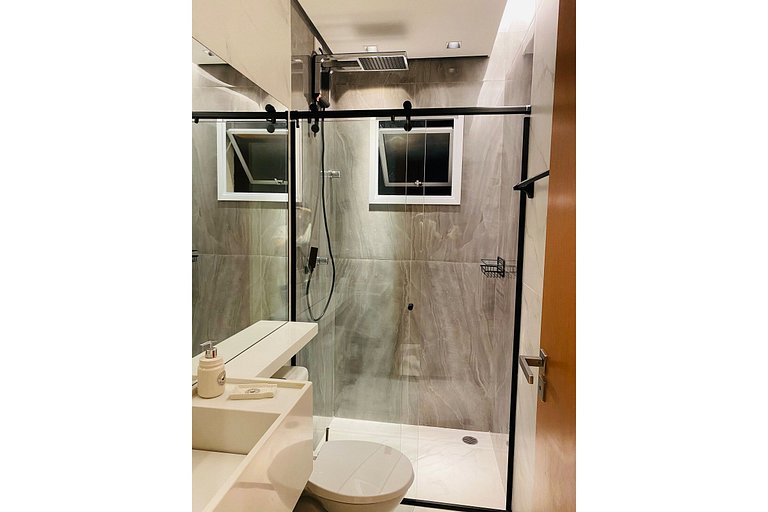 Apartamento novo luxo localizado no centro de Ubatuba. Ambiente todo climatizado, suíte, quarto e sala. Tv Smart de 50 polegadas na sala, todos com cortina blackout. 2 vagas de garagem cobertas. Internet própria 100MB. Oferecemos filtro de água. Churrasqueira gourmet super confortável e completa para a sua melhor estadia com sua família em Ubatuba. Na volta da praia, piscina!!!