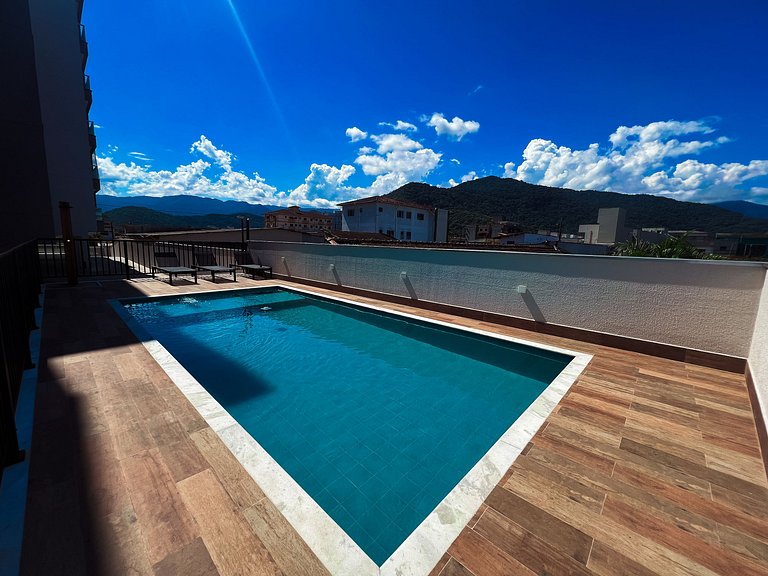 As mais de 100 praias de Ubatuba serão sua diversão durante o dia. Na volta, a piscina do prédio e a varanda gourmet com churrasqueira deixarão seu dia ainda mais perfeito.