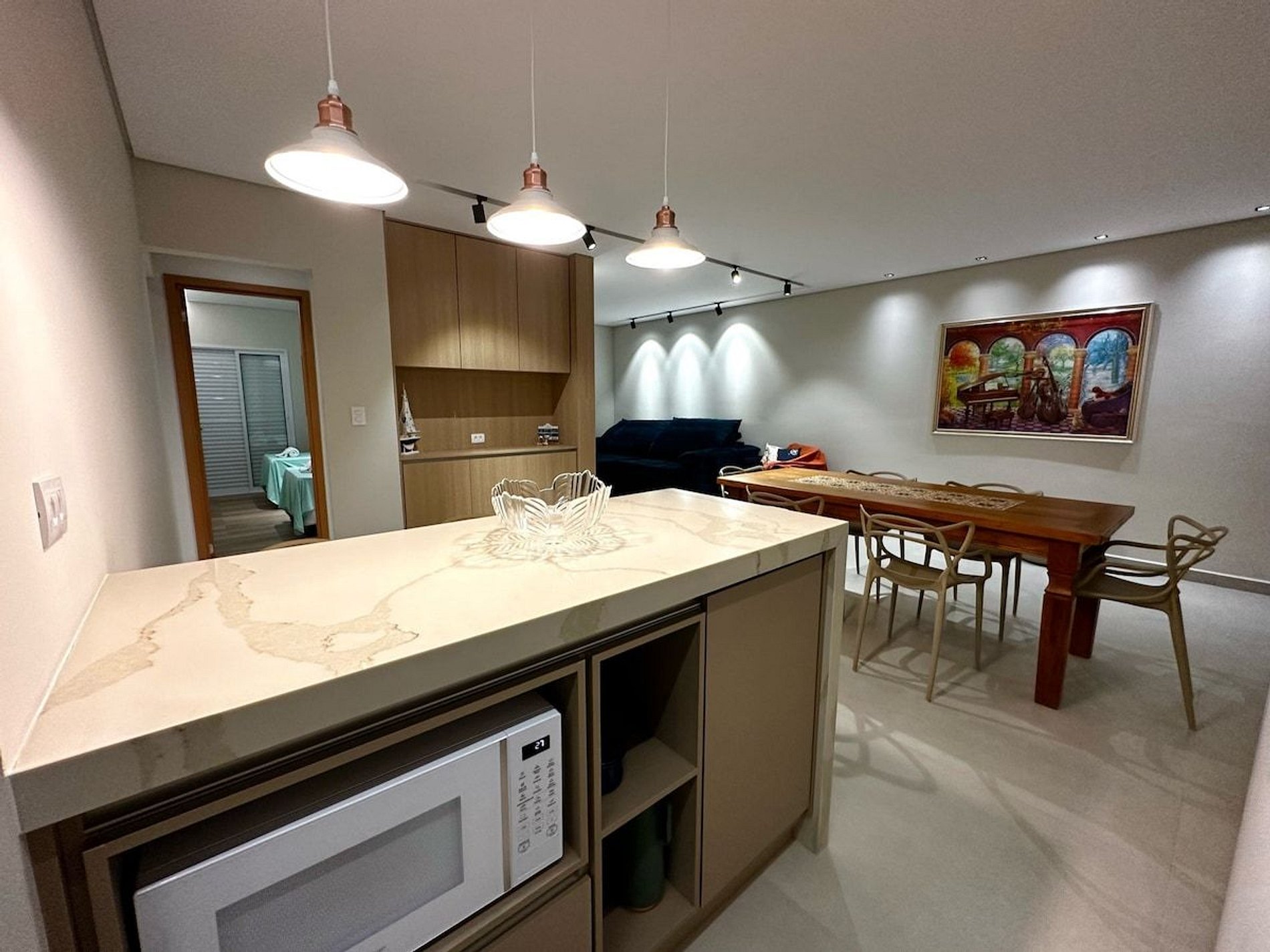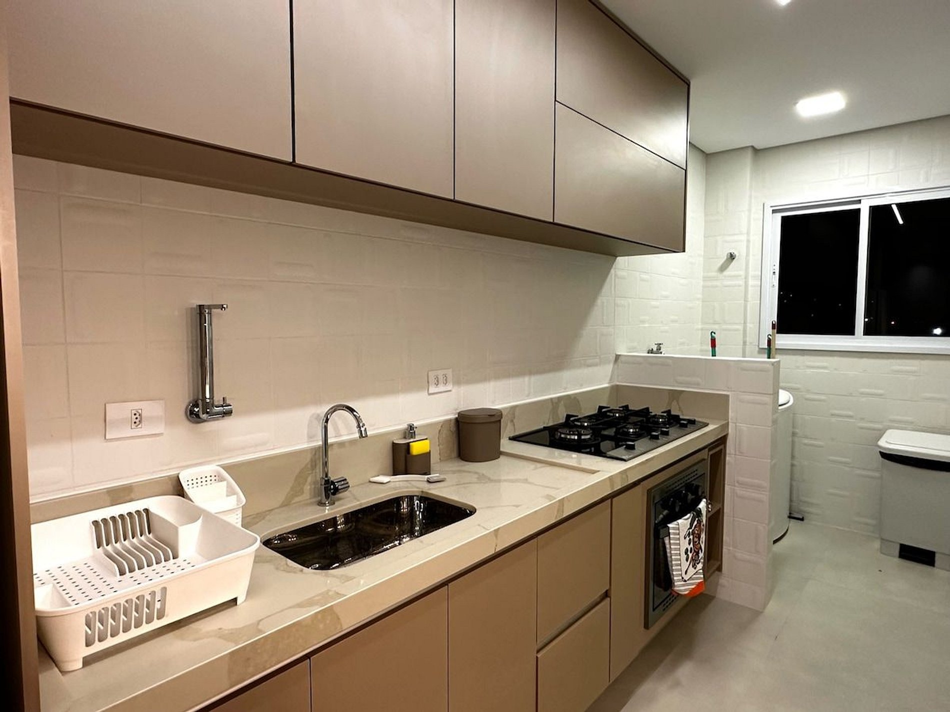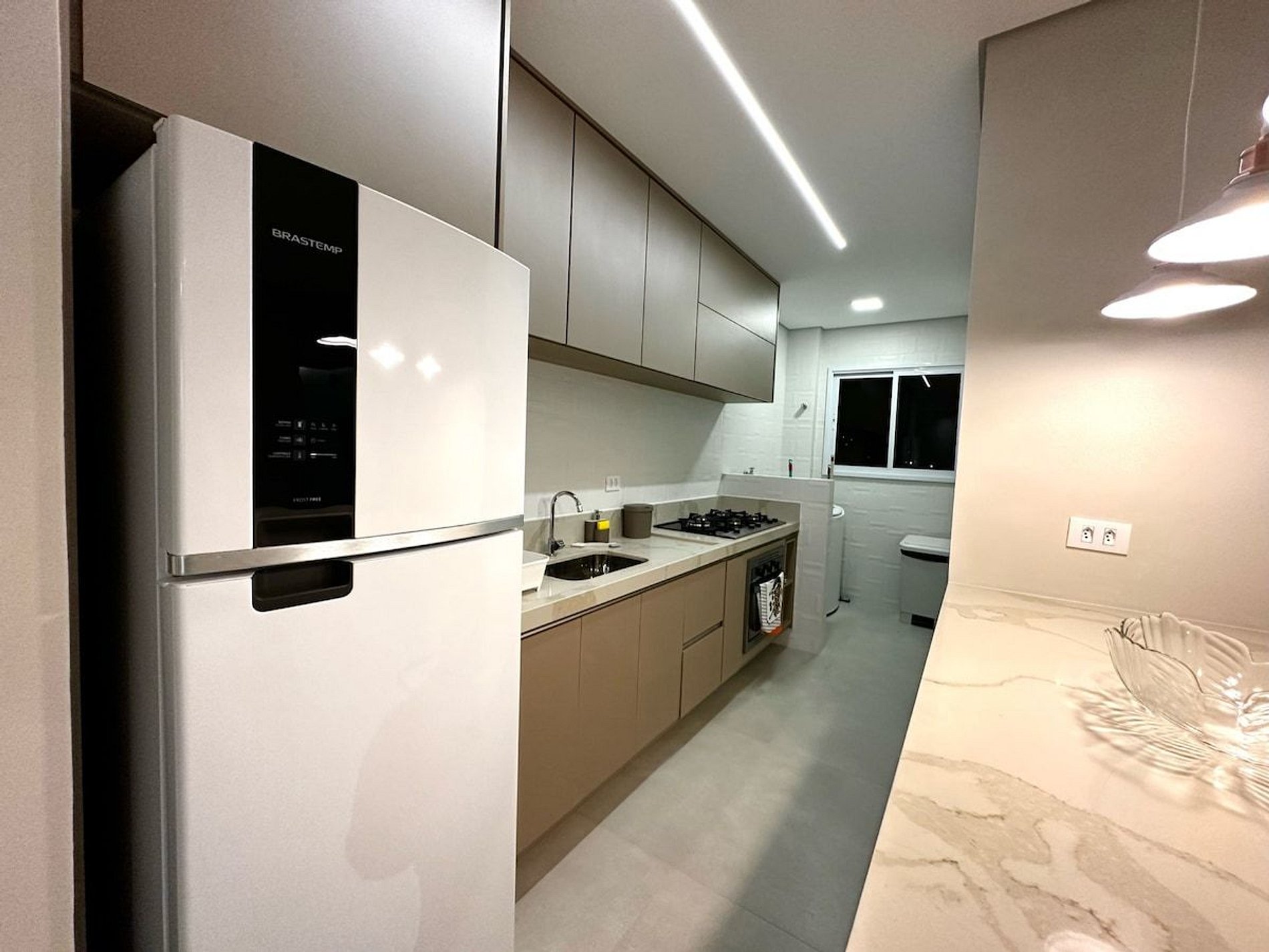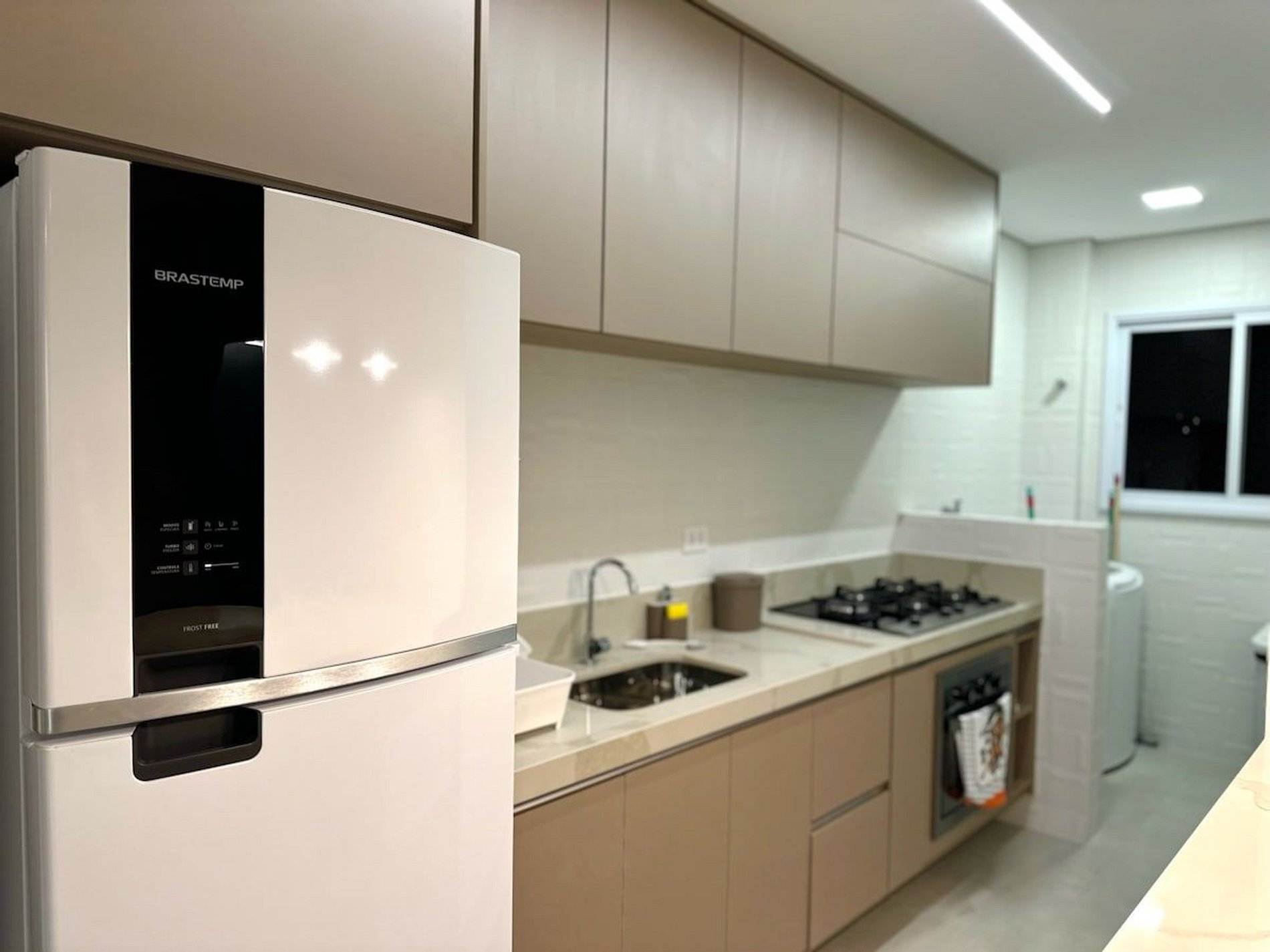 Cozinha totalmente equipada com fogão, geladeira, microondas