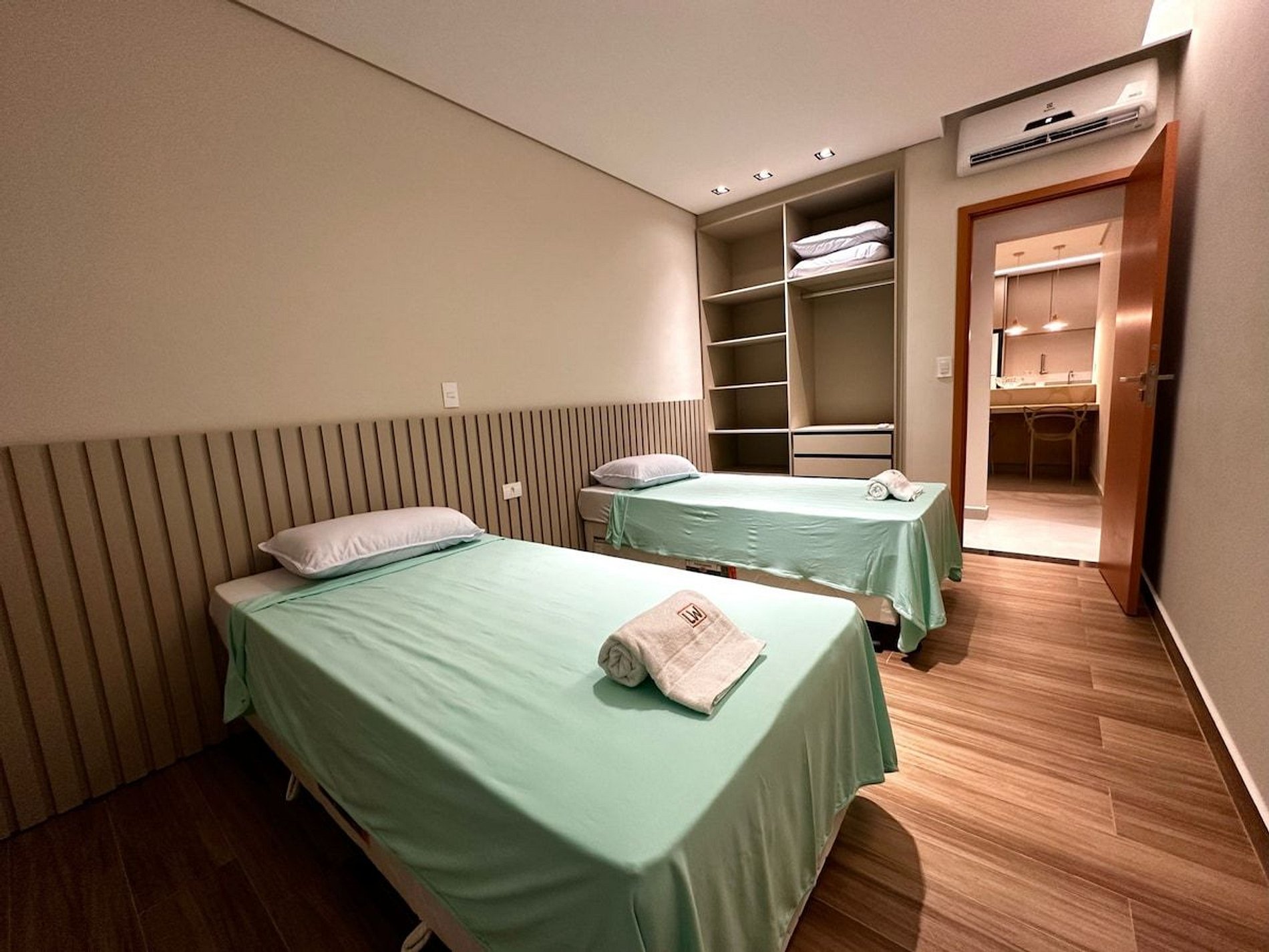 Os quartos possuem camas da melhor qualidade e armários planejados
