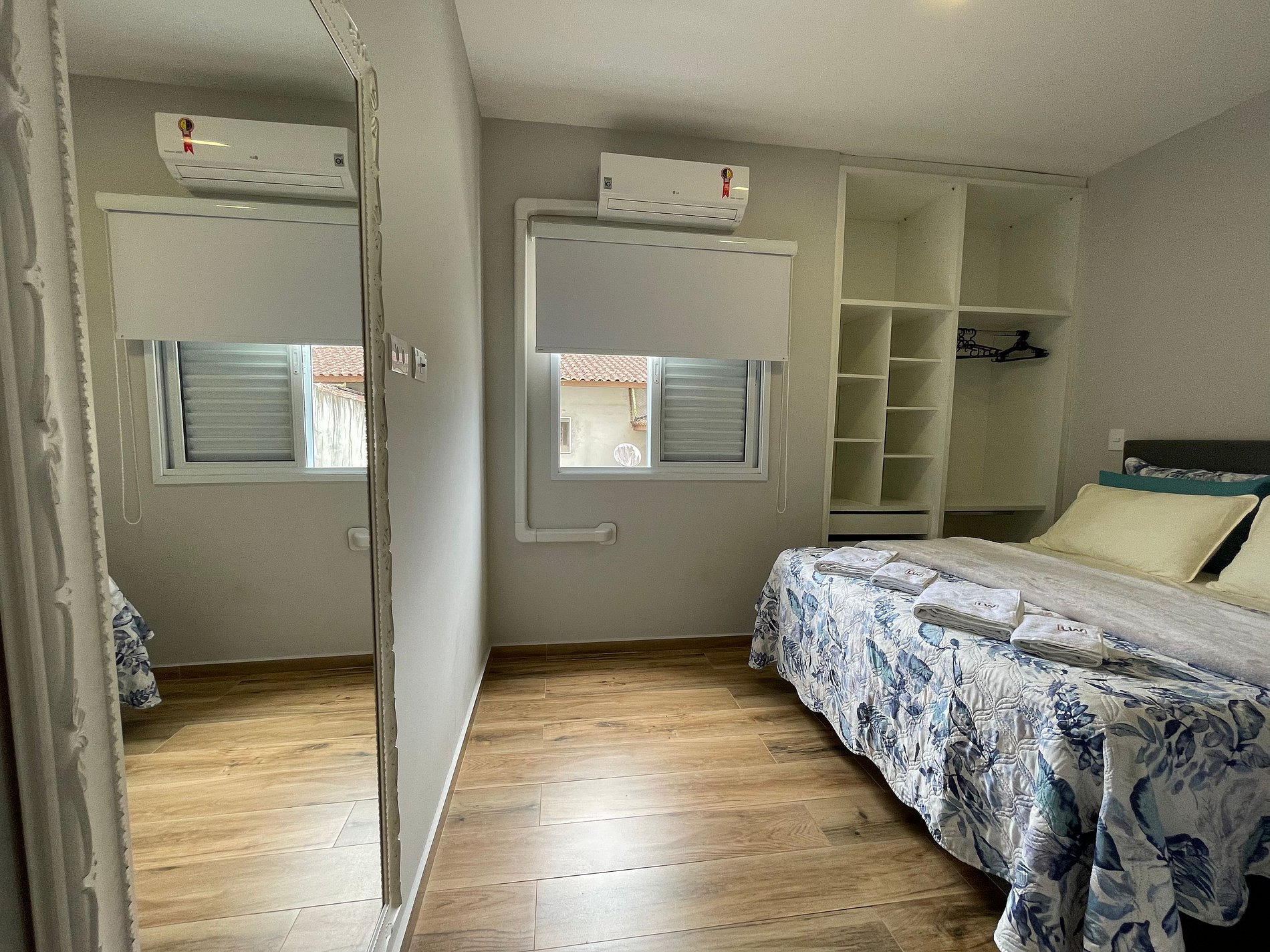 A acomodação foi excelente, o espaço da casa abriga confortavelmente 5 hóspedes (conforme descrição). Os cômodos são grandes, bem arejados e ainda possui uma sacada bem espaçosa com churrasqueira e vista para a piscina do prédio. A localização também é boa, estando bem próximo do centrinho de Ubatuba. O anfitrião foi bem flexível, o acesso ao prédio é super fácil e descomplicado. Excelente custo X beneficio.
