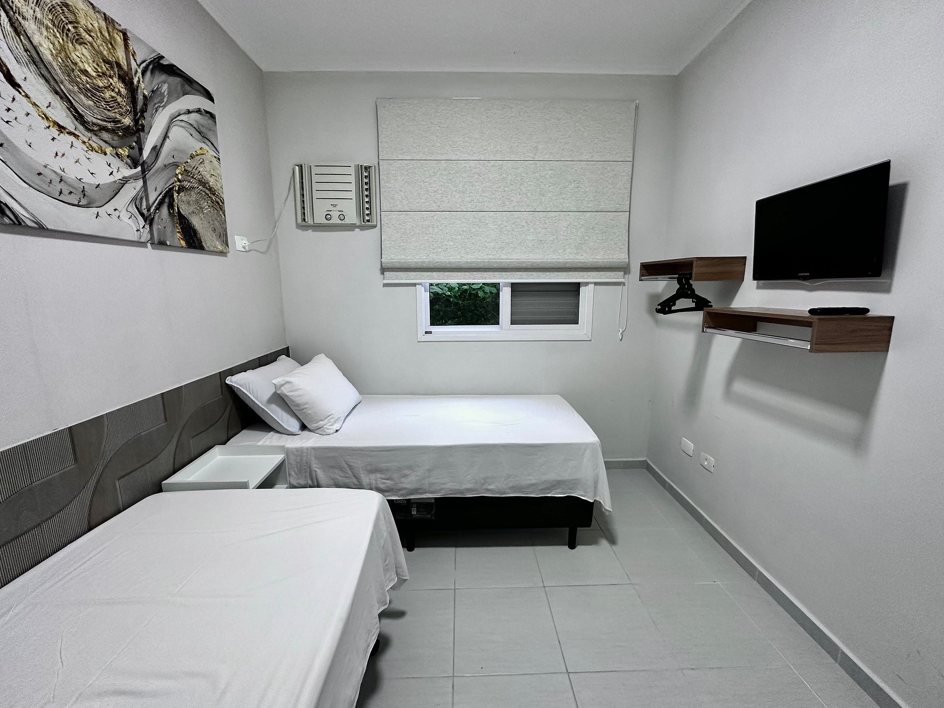Os quartos possuem televisão e camas da melhor qualidade.