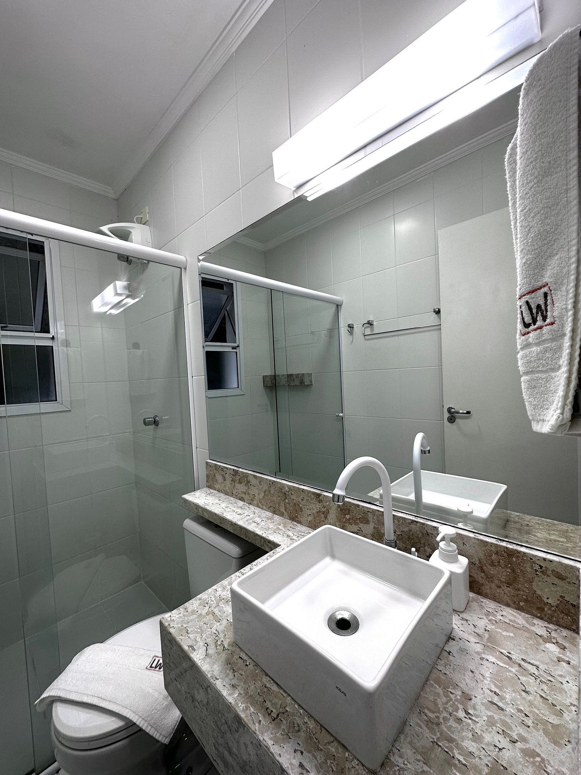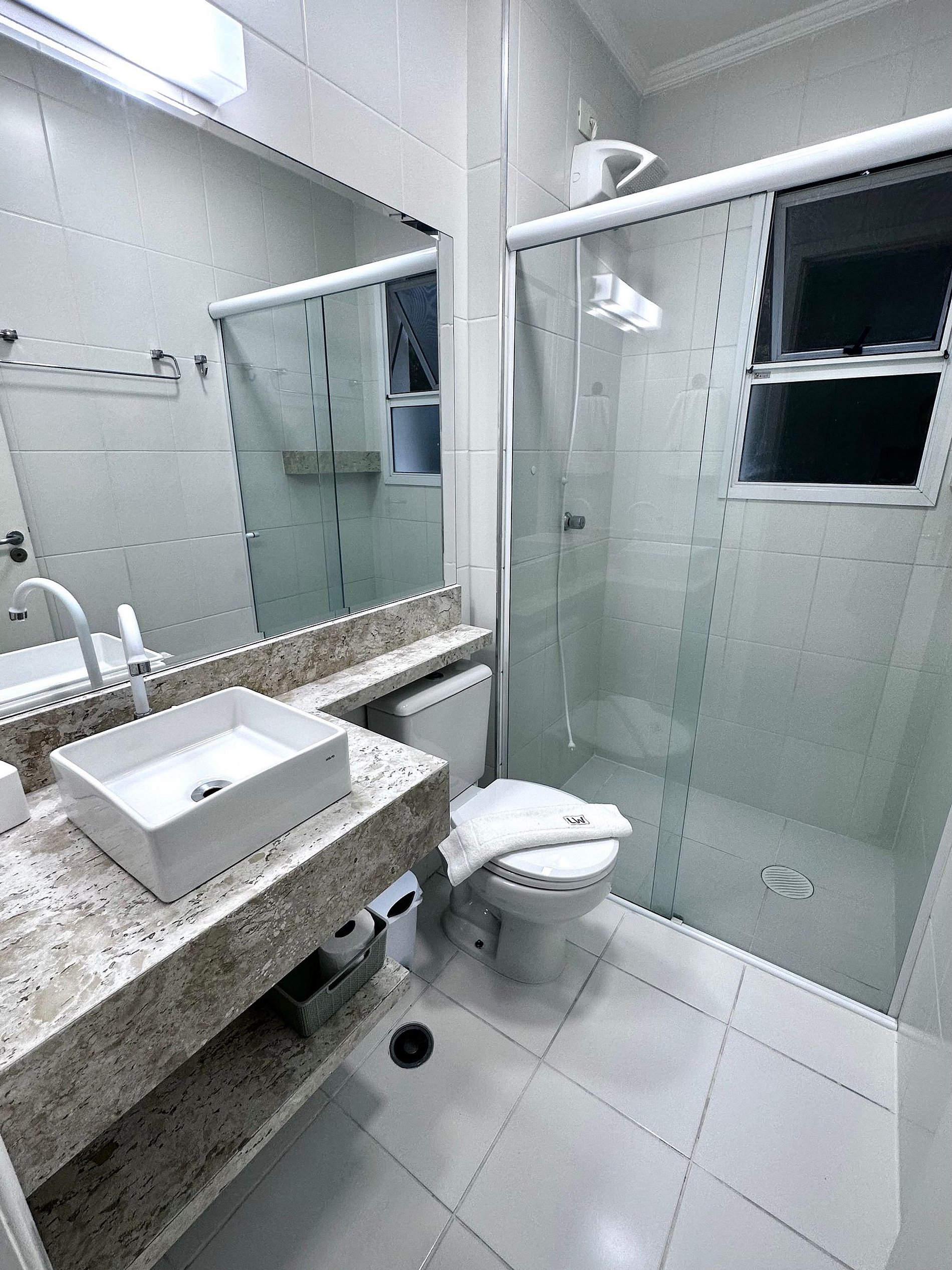 Taxa de limpeza inclui roupas de cama (travesseiros com capa de algodão impermeável, lençol de elástico, fronhas, mantas microfibra higienizada , 1 toalha de banho por hóspede, 1 toalha de rosto para cada banheiro)
